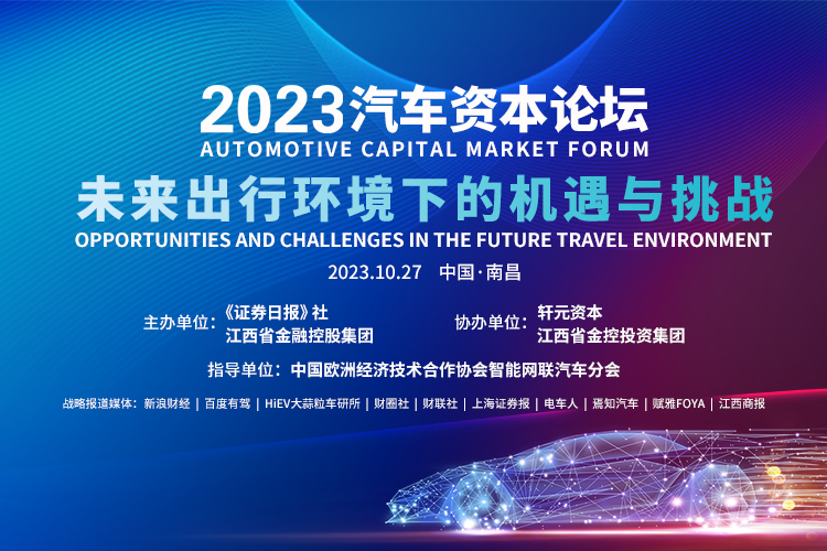 由《證券日報(bào)》社與江西省金融控股集團(tuán)主辦、江西省金控投資集團(tuán)與上海軒元私募基金管理有限公司協(xié)辦的"2023汽車資本論壇--未來出行環(huán)境下的機(jī)遇與挑戰(zhàn)"將于2023年10月27日在江西南昌舉辦...[詳細(xì)]