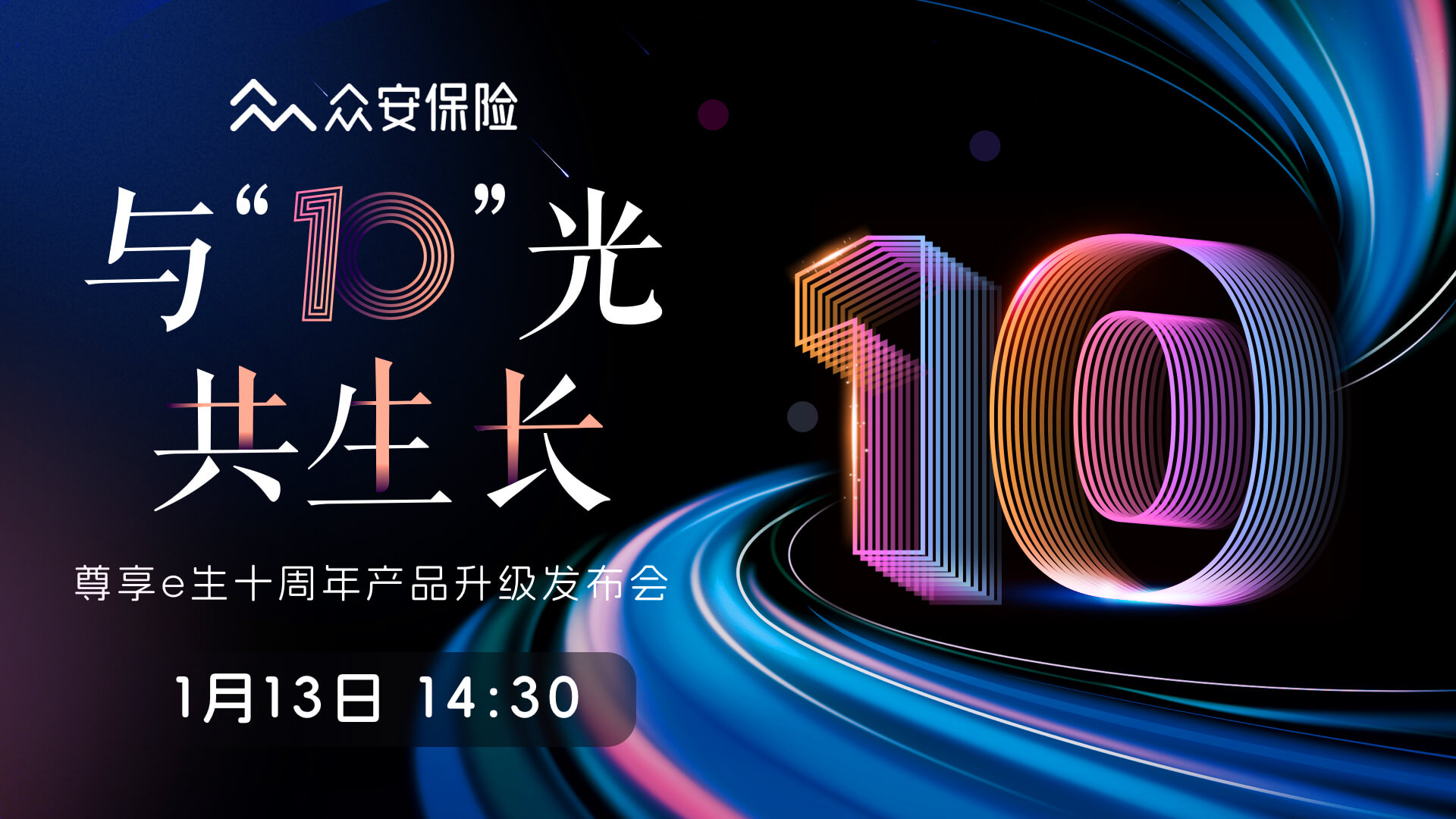1月13日下午14:30-17:00,“與10光,共生長”尊享e生十周年產品升級發布會,會上將重點發布尊享25新產品、推出眾安健康管理服務體系、探討健康險未來發展方向。