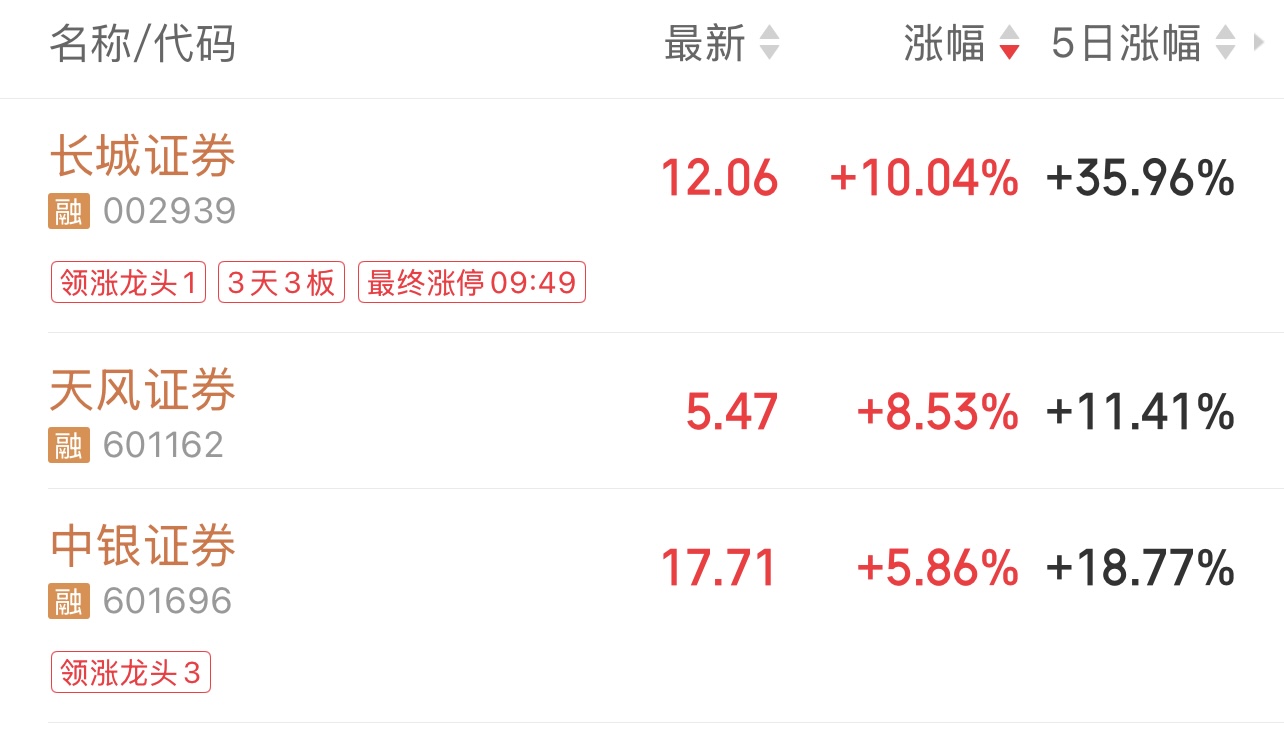 8月15日,同花順數據顯示,截至記者發稿時,證券板塊整體漲幅已超過2%。其中,長城證券表現搶眼,漲停并實現“三連板”,天風證券、中銀證券等熱門個股漲幅也均超過5%。
