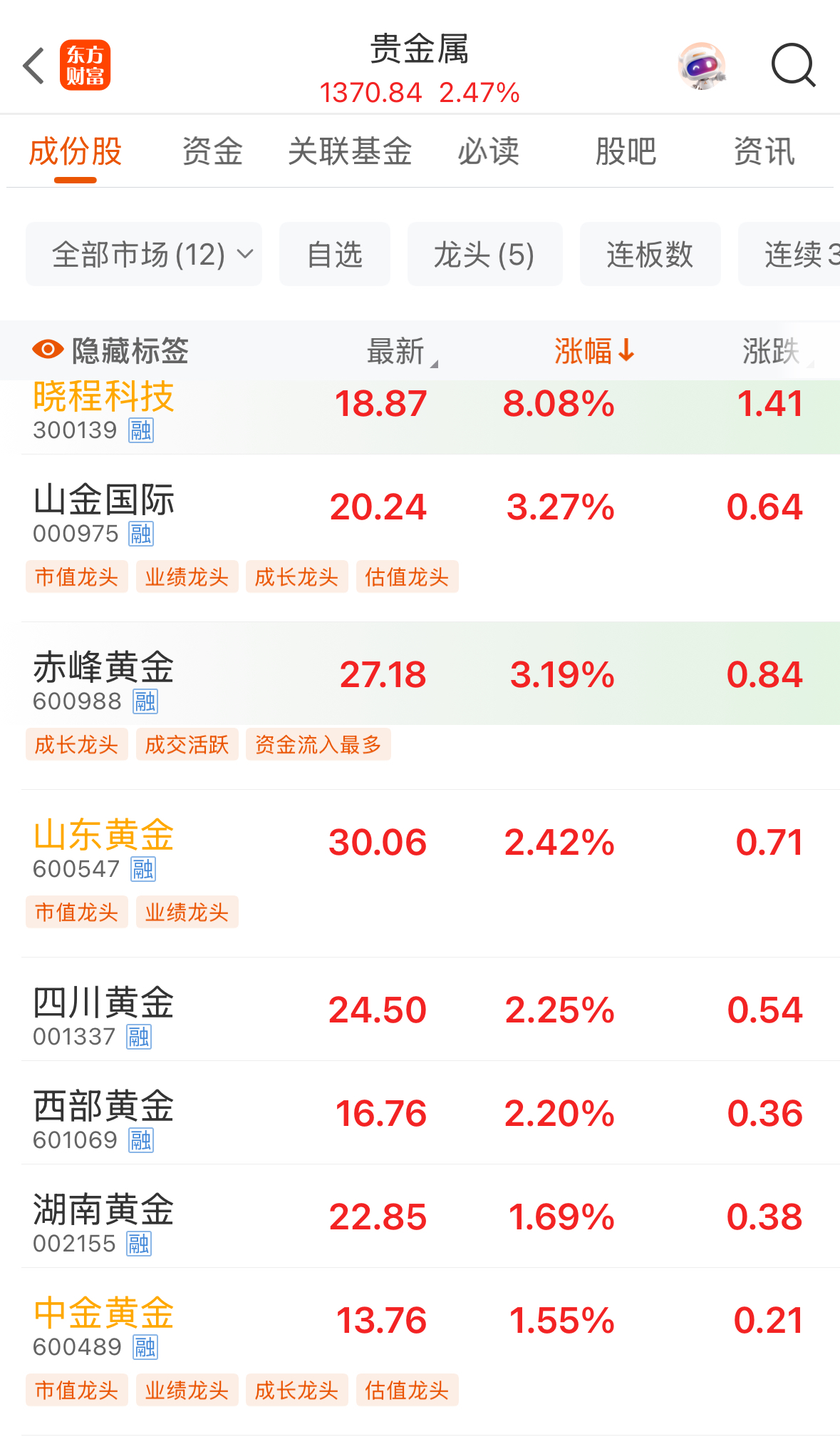 受金價回升提振,A股貴金屬板塊開盤競價高開,截至記者發稿時,貴金屬板塊指數上漲2.49%,成分股中曉程科技(300139)大漲8.08%;山金國際(000975)、赤峰黃金(600988)漲超3%。