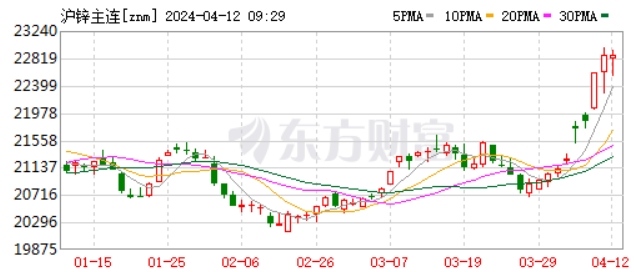 早盤國內鋅價接近23000點大關(供圖:東方財富)
