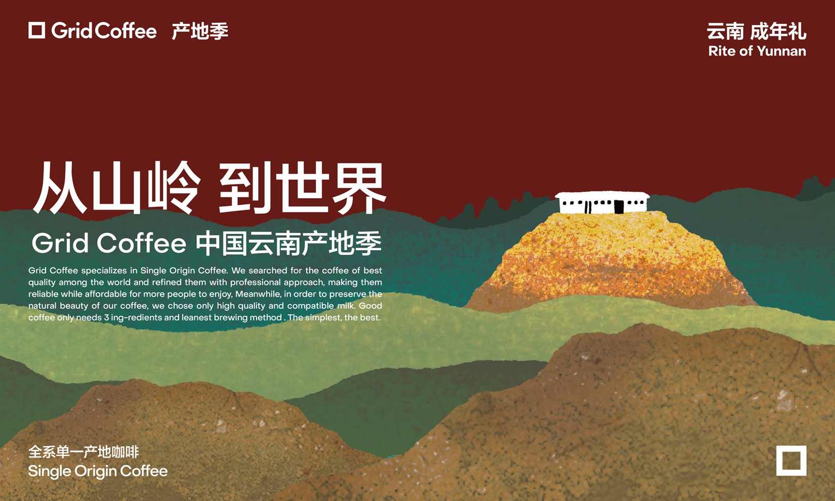 GridCoffee定位“單一產(chǎn)地咖啡”,自創(chuàng)立起就堅信云南咖啡擁有足以邁入世界精品咖啡體系的實力與潛質(zhì),亦從創(chuàng)立之初就深耕云南產(chǎn)區(qū),每年舉辦一次“中國云南產(chǎn)地季”活動,通過產(chǎn)地溯源、產(chǎn)品開發(fā),制作《追山羊》專題雜志及豐富的文化周邊,系統(tǒng)性地傳遞云南風土的豐富層次和精品潛力,推動云南咖啡進入主流精品市場視野,強調(diào)其在全球精品咖啡語境中的中高端定位與文化表達的潛力。