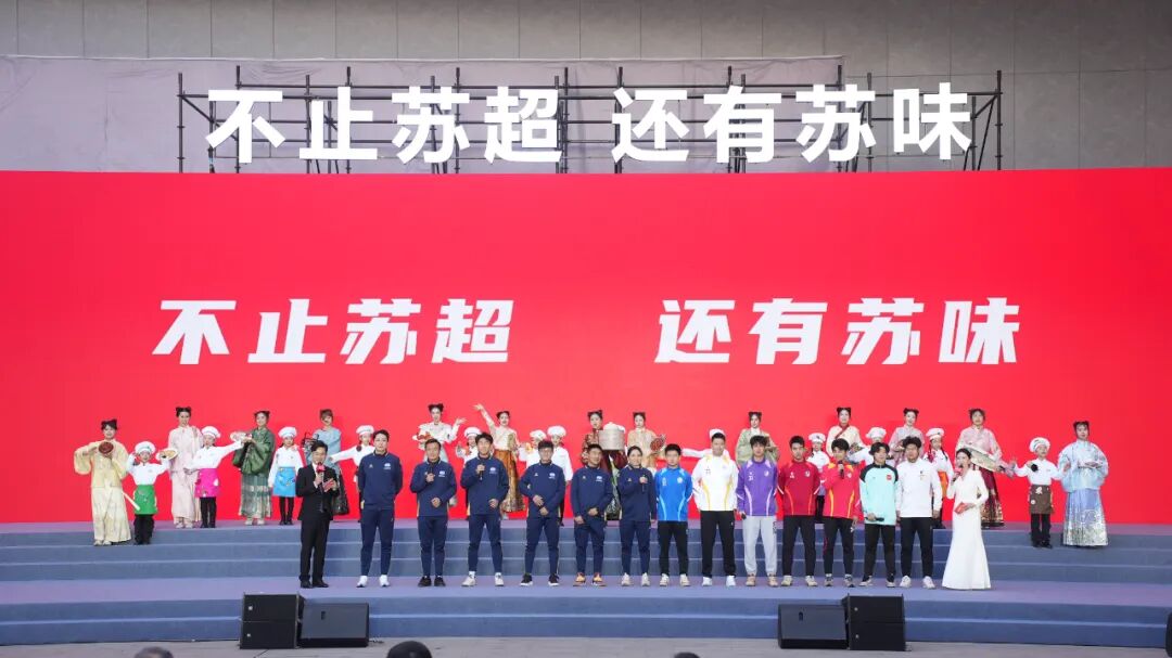 伴隨著開場舞《茉莉芬芳》的演繹,江蘇十三城的風味故事一一呈現。啟動儀式現場,“蘇超”球隊的隊員們化身“美食推薦官”,紛紛為家鄉美食打call。江蘇省作家協會副主席祁智、“蘇超”爆款熱梗代言人叨叨傅也前來助陣,從“蘇超”賽場的激情梗王,變身為“蘇味”的探索者。
