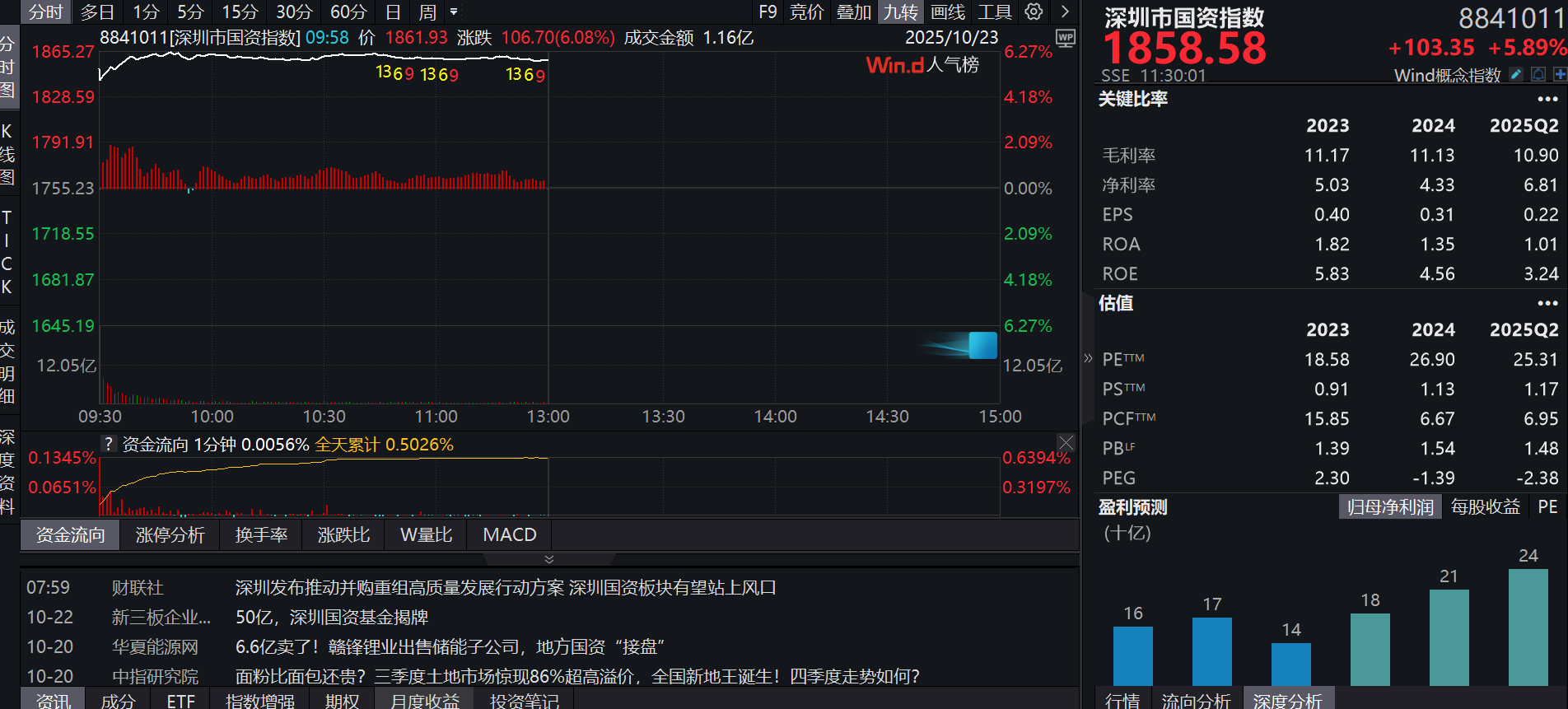 10月23日,深圳市國資指數開盤跳空高開,截至午間收盤,該指數上漲5.89%。